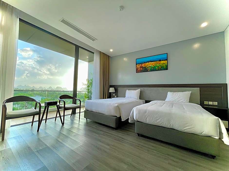 The spacious air-conditioned twin/double room features a flat-screen TV, a wardrobe, a safe deposit box, an electric kettle as well as mountain views.
